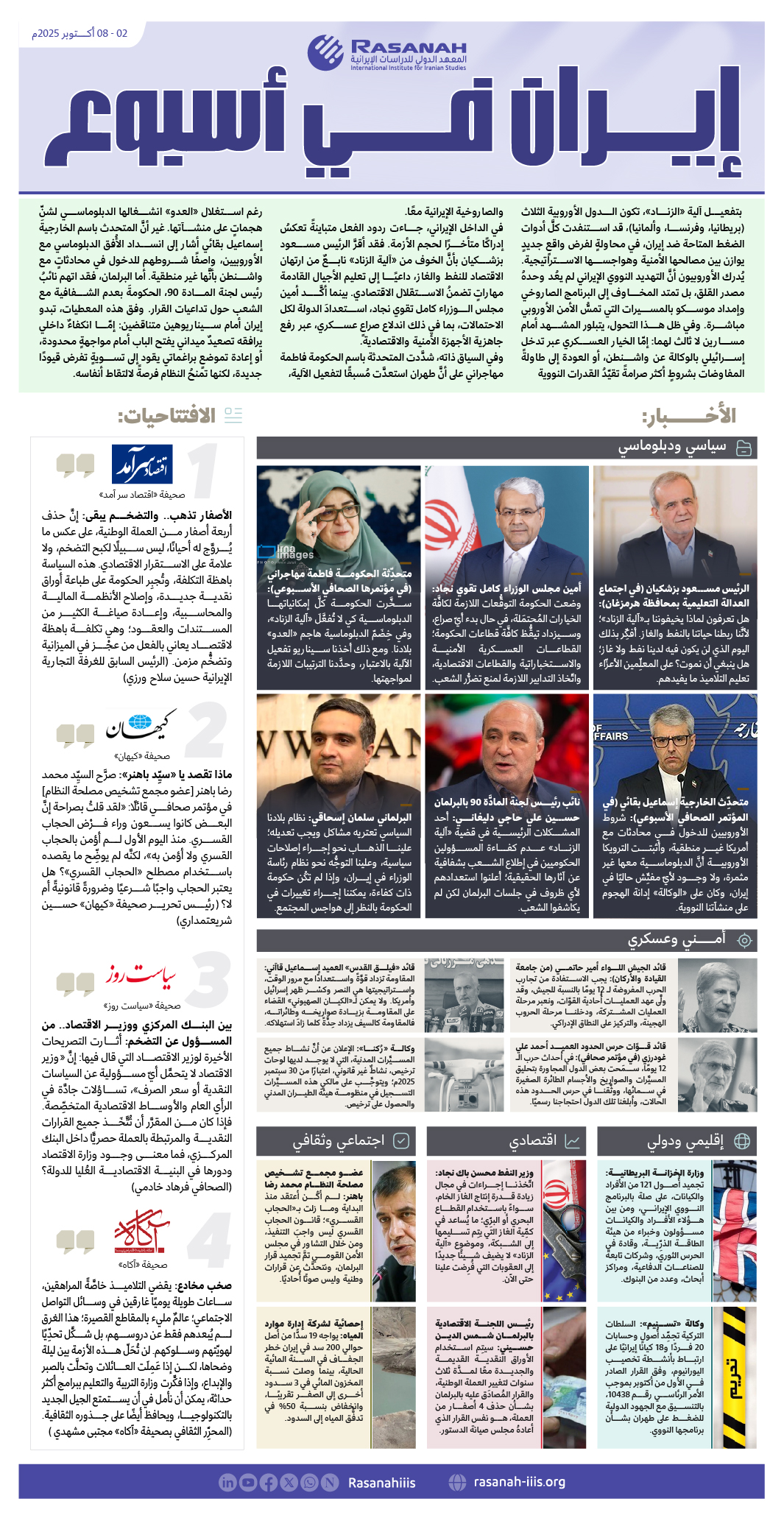 إيران في أسبوع.. من الخميس 2 أكتوبر إلى الأربعاء 8 أكتوبر 2025م