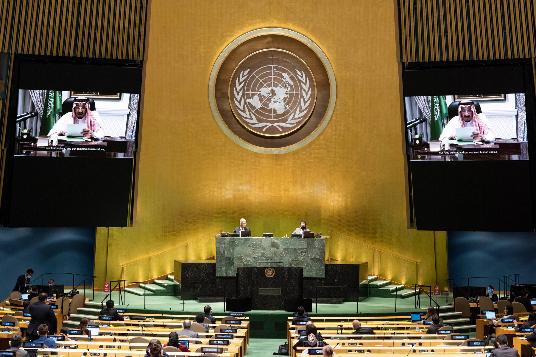 في كلمةٍ تاريخيّة ألقى خادم الحرمين الشريفين الملك سلمان بن عبد العزيز كلمة المملكة العربية السعودية أمام الجمعية العامّة للأمم المتحدة افتراضيًّا في افتتاح دورتها الخامسة والسبعين. وفي وقتٍ بالغ الحساسية يمر العالم بمنعطف خطير تضطربُ فيه أوراق التوازنات الدوليّة والإقليميّة وتختلط فيه أوراق الثوابت بالمتغيرات؛ بسبب عدم التقييم الصحيح للقوى العالميّة لحجم المخاطر التي يُشكلها النظام الإيراني على الأمن والسّلم العالميّيْن جاءت كلمة الملك سلمان بمثابة النداء الأخير قبل انطلاق العالم نحو الفوضى. إذا ما سمحت الدول الكبرى لإيران التي أثبتت غير مرة أنها دولة غير مسؤولة بالتسلح لأسبابٍ بعضها سياسيّ يتعلق بمتغيرات العلاقات التي تجمعها بالولايات المتحدة والبعض الآخر اقتصاديّ طمعًا في مكاسب صفقات السلاح مع إيران، متناسيةً الثوابت التي ظلت تحافظ على توازن معادلات القوة في العالم منذ انتهاء الحرب العالمية الثانية وحتى الآن.