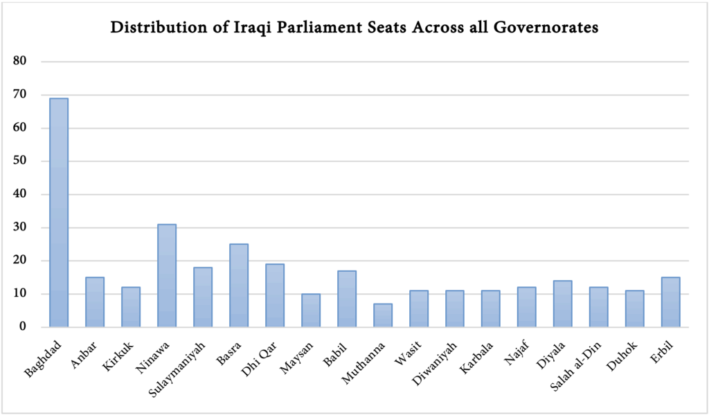 [23] “Seat Distribution for the 2021 Iraqi Parliament Elections,” Independent High Electoral Commission, accessed November 30, 2021, https://bit.ly/3K4aBKq. [Arabic].