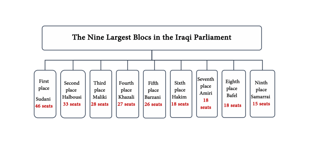 This mirrors what happened in 2021, when Sadr won 73 seats — more than Sudani’s 46 — but could not form a government because the Coordination Framework exercised the blocking third. A similar tactic could be applied against Sudani.
