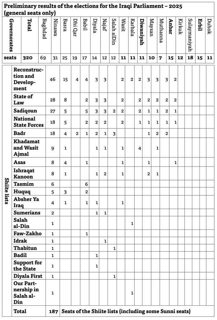 The election results and the shares of the Shiite, Sunni and Kurdish alliances that contested the 2025 parliamentary elections reveal the following conclusions: