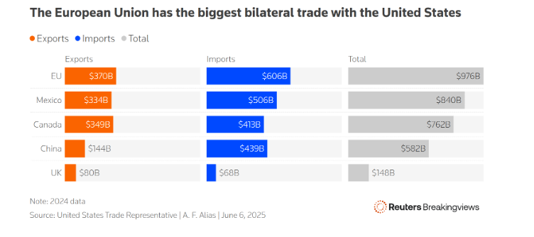 The EU is adopting a “play it cool” strategy, focusing on negotiations rather than immediate retaliation. Trump’s trade policies reflect a pattern of leveraging US economic and geopolitical dominance to extract concessions. Unlike China, which retaliated forcefully against US tariffs, or Canada, which resisted through public solidarity, the EU cannot adopt a purely confrontational stance. Its fragmented political landscape, with some leaders sympathetic to Trump (e.g., Poland’s new president) and reliance on US support for Ukraine against Russia’s invasion limit its ability to escalate. Similarly, the EU differs from the UK, which quickly acquiesced to a US-favorable deal post-Brexit. The EU’s $236 billion goods trade surplus with the United States in 2024 gives it leverage, but not enough to overpower Trump’s “escalation dominance” through hard power, including potential cuts to Ukraine aid or NATO support.
