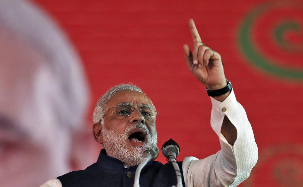 Hindu nationalist Narendra Modi, prime ministerial candidate for India’s main opposition Bharatiya Janata Party (BJP) and Gujarat’s chief minister, speaks during their national council meeting at Ramlila ground in New Delhi January 19, 2014. REUTERS/Adnan Abidi (INDIA – Tags: POLITICS)